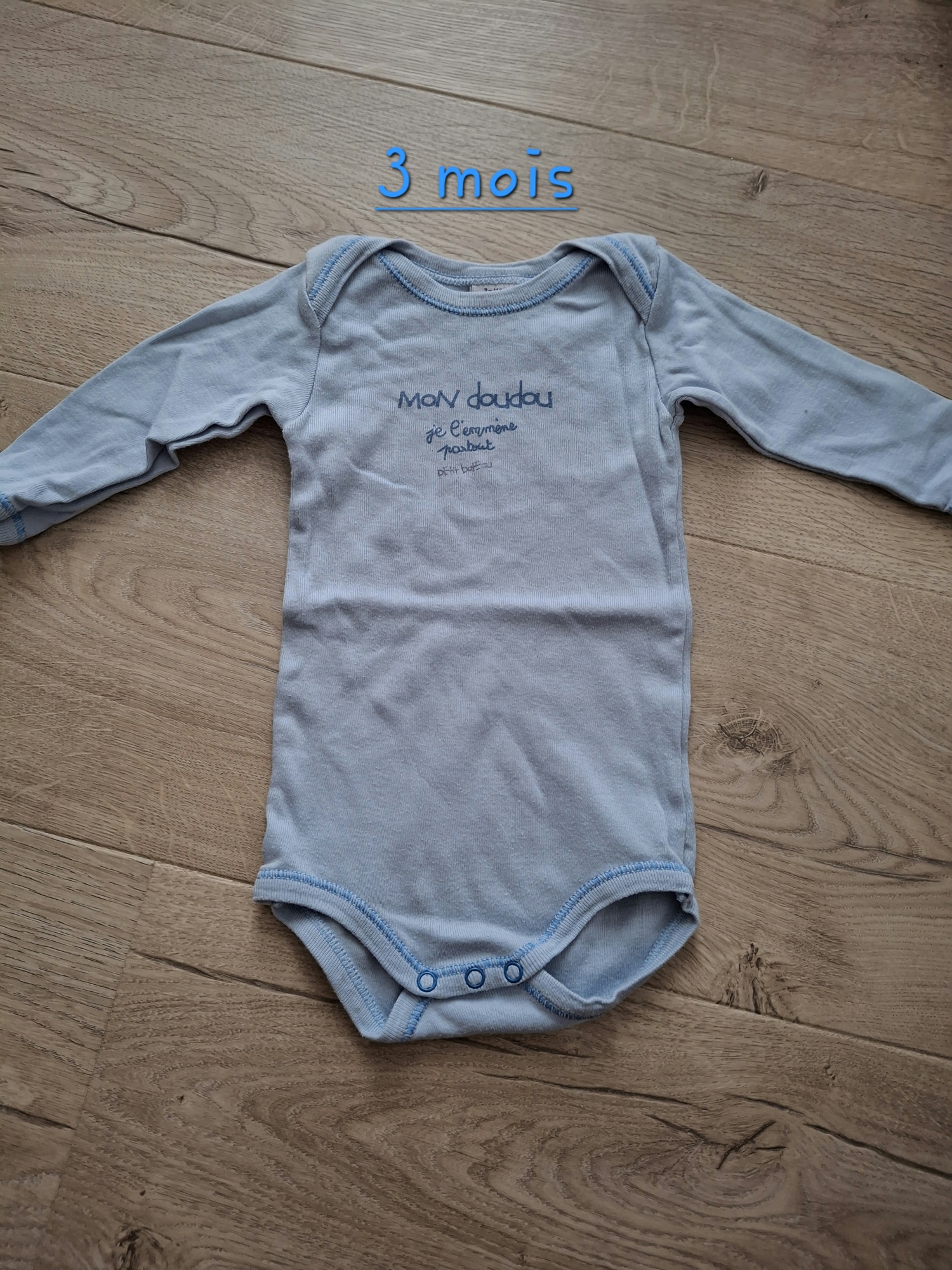 Body manches longues 3 mois bleu (Petit bateau) Body manches longues 3 mois bleu (Petit bateau) 1,00 € Gosselies (Charleroi) 4