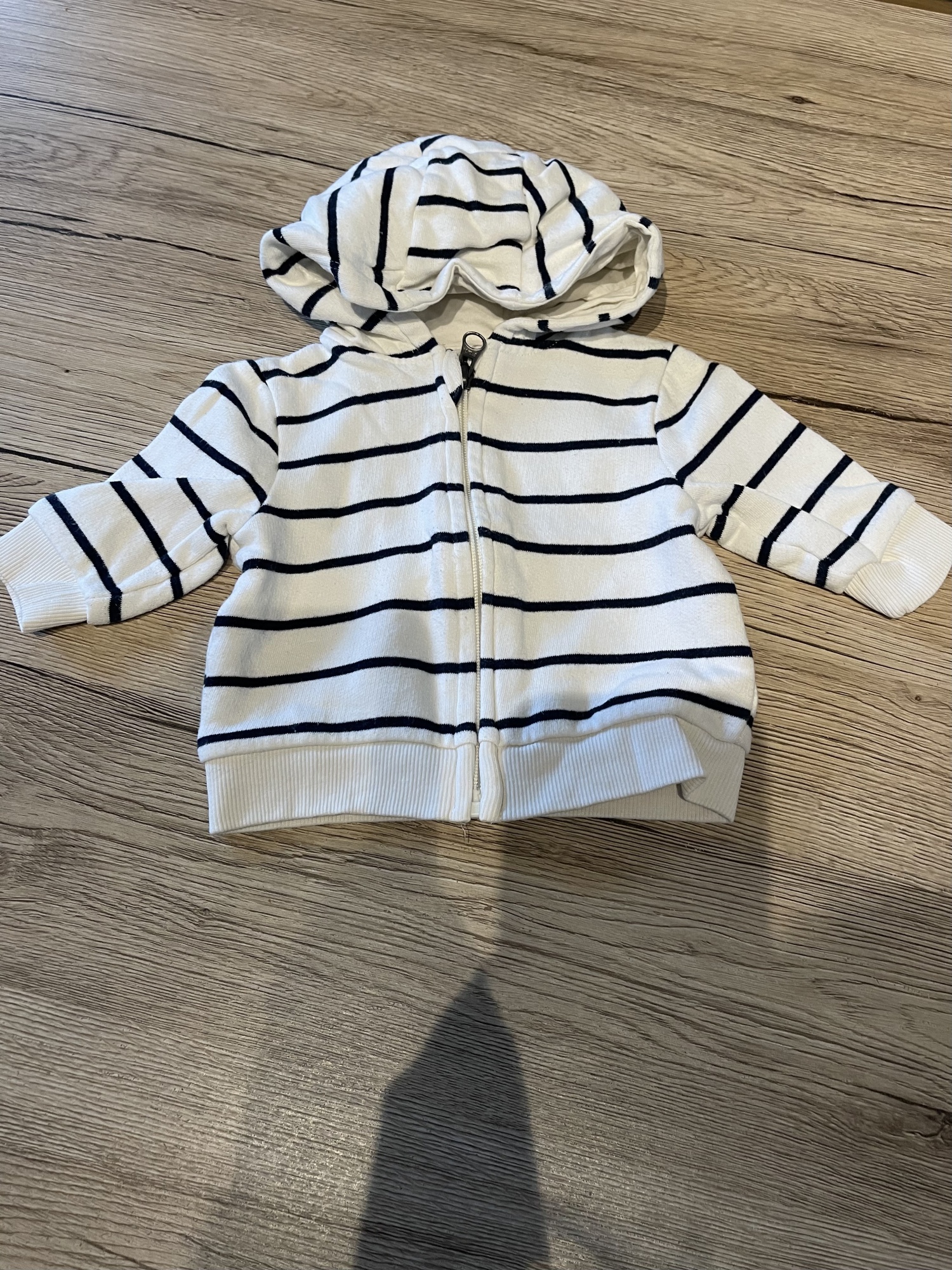 Gilet à capuche ligné marine et blanc Kiabi 3 mois Gilet à capuche ligné marine et blanc Kiabi 3 mois 3,00 € Gosselies (Charleroi) 4