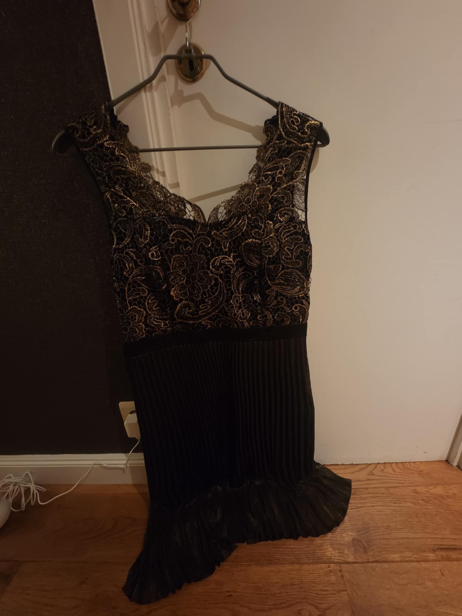 Robe noire de cocktail bas plissé et haut dentelle dorée Steps Robe noire de cocktail bas plissé et haut dentelle dorée Steps 12,00 € Gosselies (Charleroi) 234