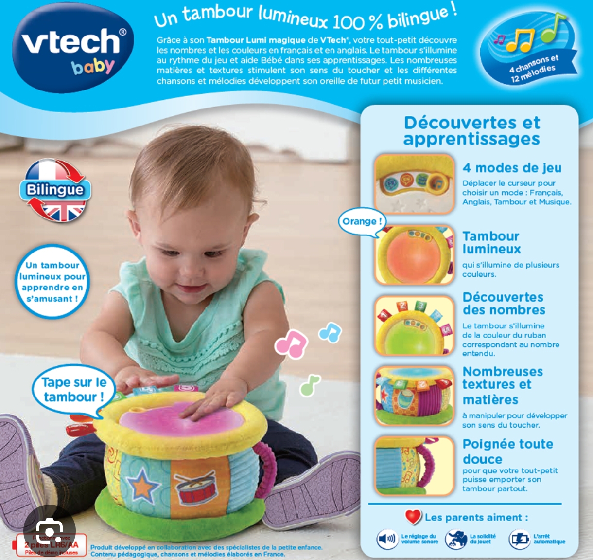 VTech, tambour musical, fr-angl, 6 mois VTech, tambour musical, fr-angl, 6 mois 10,00 € Quaregnon (Mons) 41