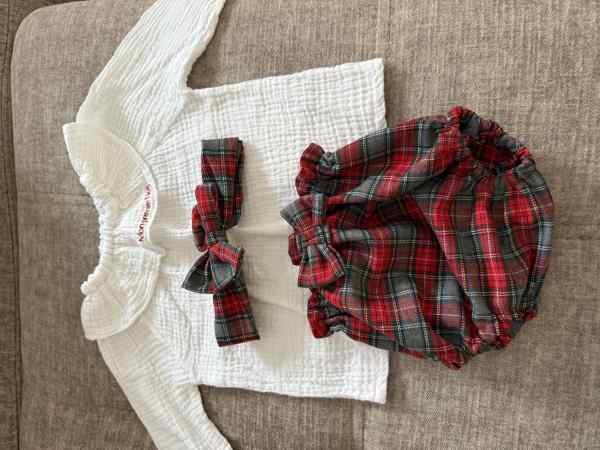 Ensemble barboteuse + blouse longues manches + bandeau rouge à carreaux (mon premier noël) 9 mois mais taille grand jamais porté Ensemble barboteuse + blouse longues manches + bandeau rouge à carreaux (mon premier noël) 9 mois mais taille grand jamais porté 15,00 € Gosselies (Charleroi) 20