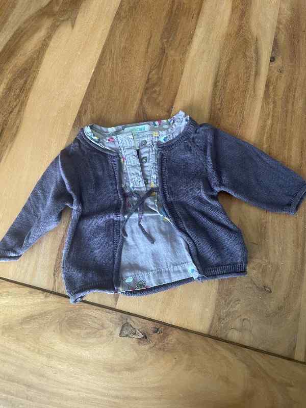 Obaïbi gilet + blouse mauve 3 mois Obaïbi gilet + blouse mauve 3 mois 5,00 € Gosselies (Charleroi) 31